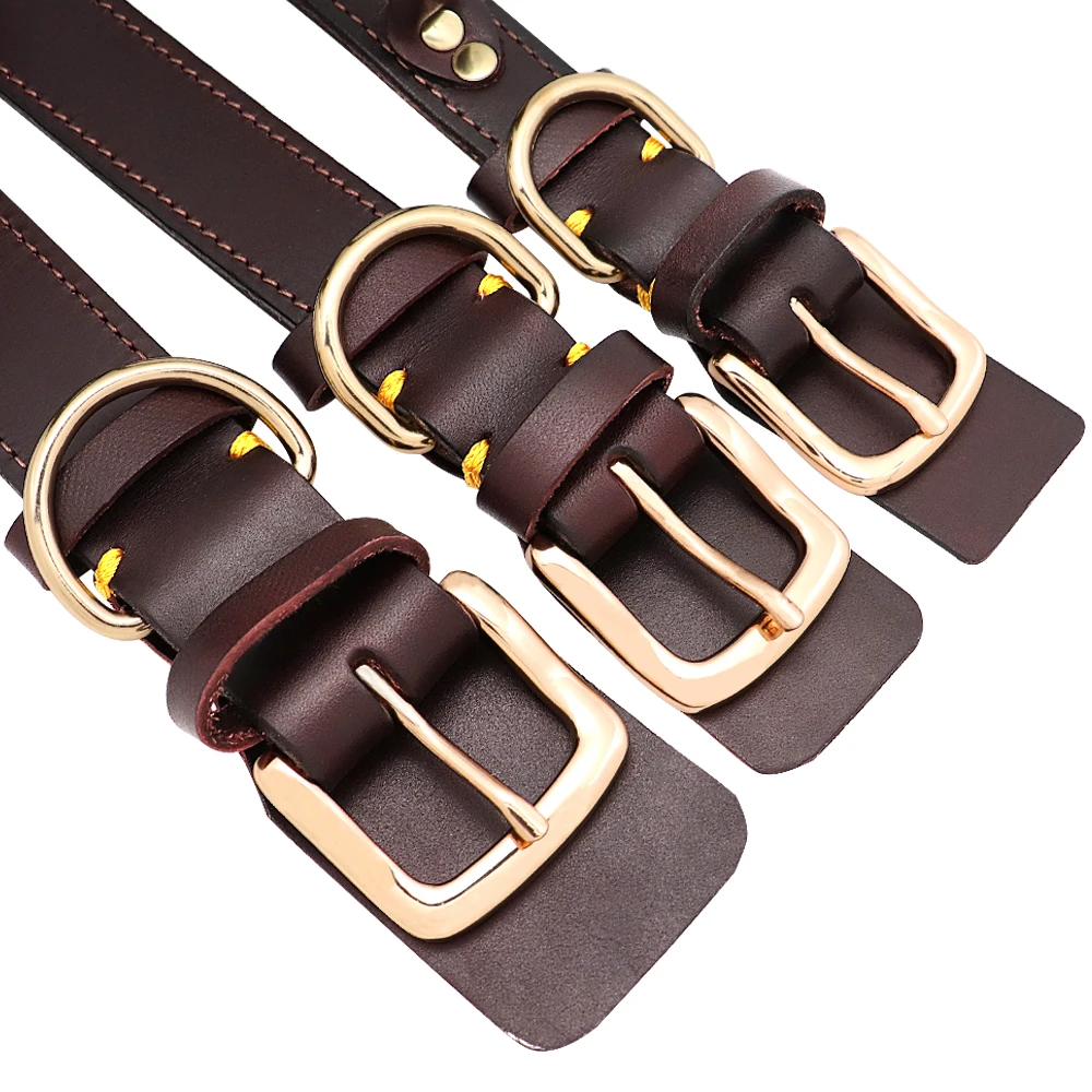 Custom Leather Dog Collar Personalized ID Tag Dog Collar Free Engraved Nameplate Pet Collars With Handle For Medium Large Dogs
